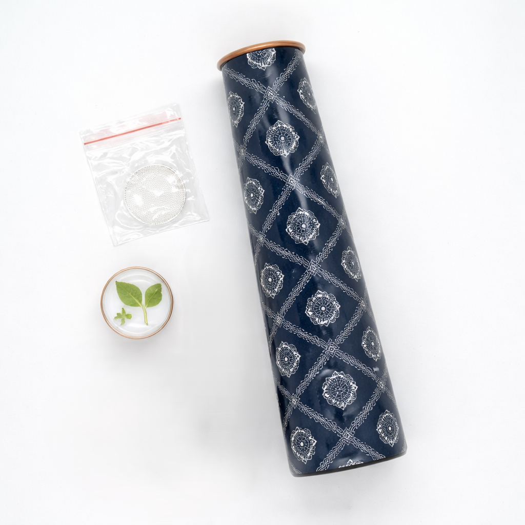 Farmacy Herbal, Printed Blue Flower Design Copper Water Bottle - 950 ml (Pack of 1)